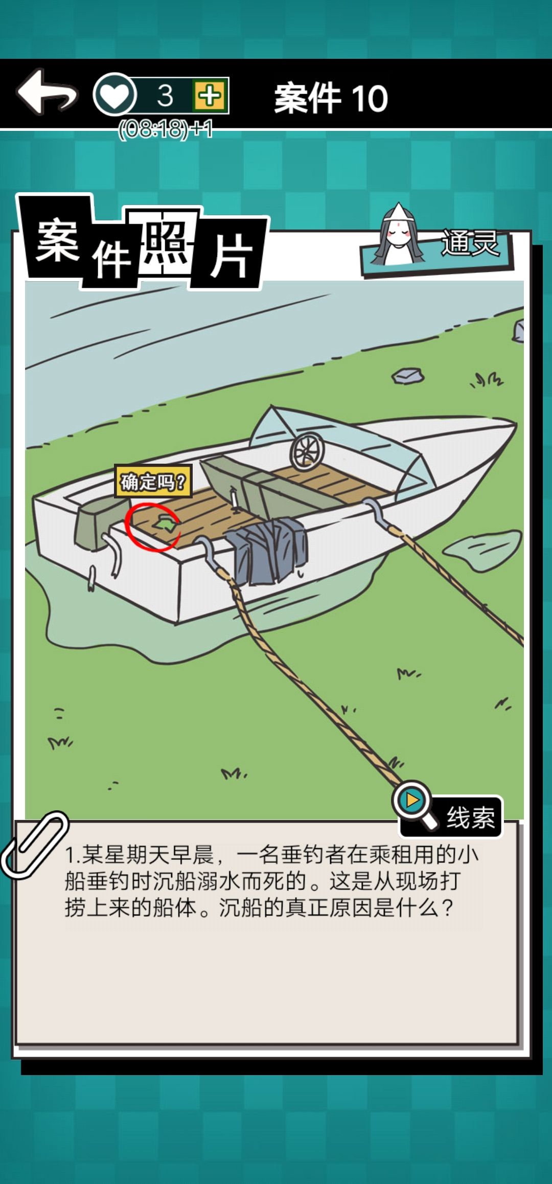 这个是第十关。他问快艇为啥沉了我就选这个洞但是一直不对。我通灵了一下居然给我扯到了河里。之后的问题也一样答非所问。选区没一个是对的。正常人不看广告怎么过得了这一关