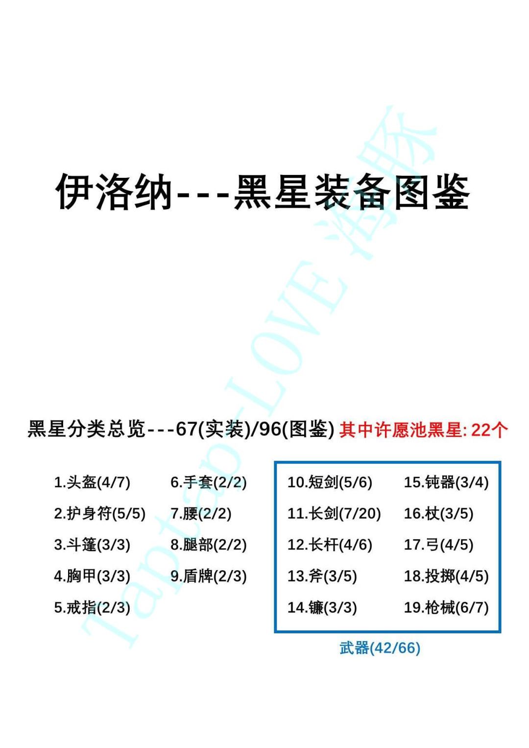 记录都是当前版本已经实装的黑星装备,图鉴大部分是酋长大佬给的,眸子大佬也提供了部分图鉴。如有遗漏,忘各位大佬补充。文章末尾提供pdf版本下载。