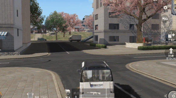 当在空旷地段遇袭,又找不到掩体时,可把车开到路边墙体等地方。利用周围的墙面形成的三角区域,可以为我们暂时挡住来自左右两边以及正前方三个方面的火力。