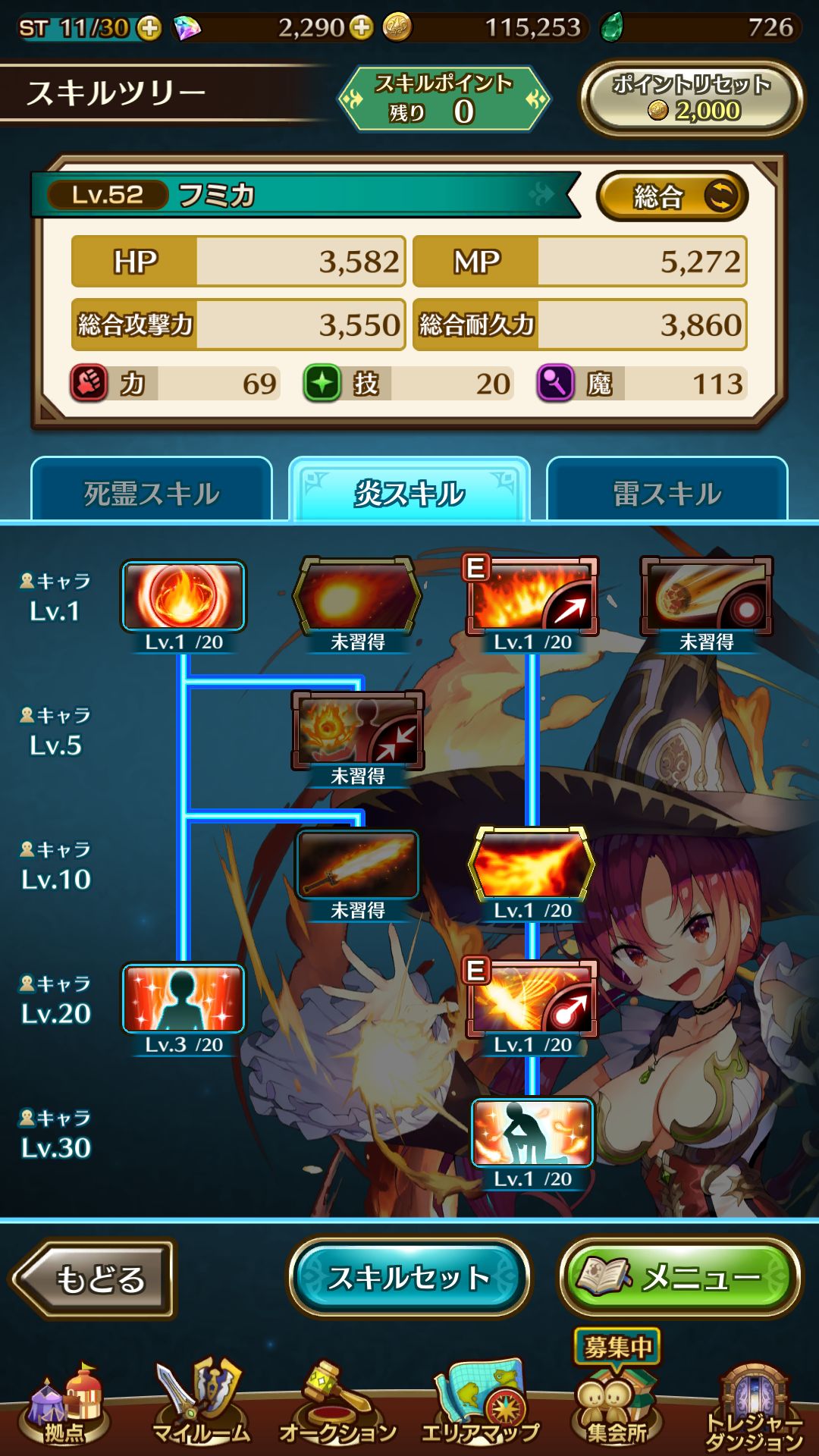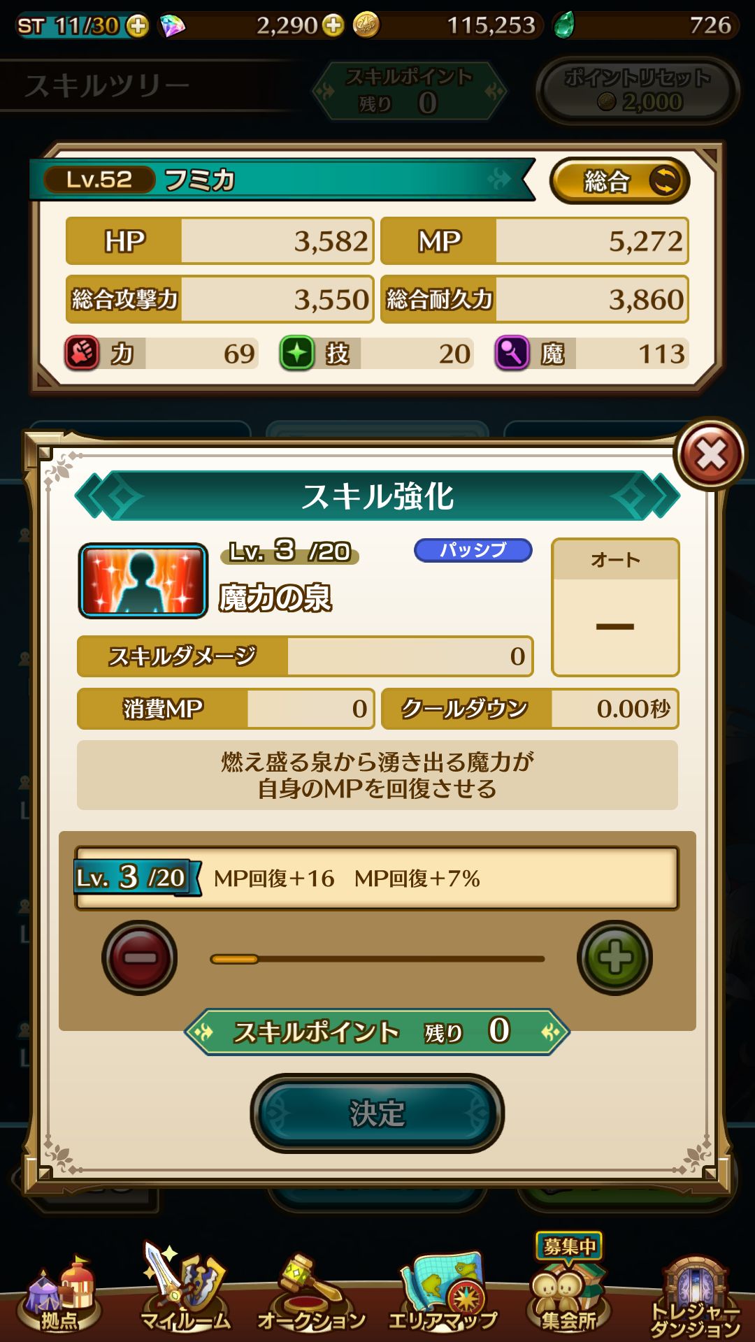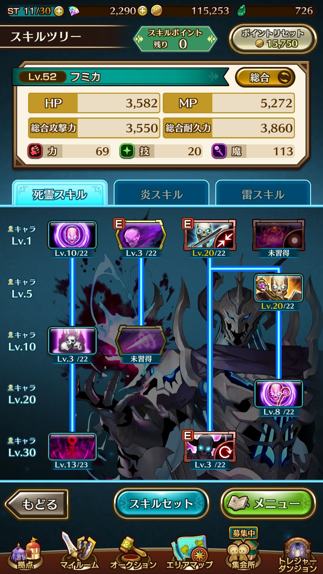 实际上主召唤还有另外的idea搭配可能,小文香我也打算尝试死灵雷奥拉搭配,由于奥拉idea是5-3通关获得,所以并不会作为本攻略的附加内容在后期进行添加,不过可以提一下,奥拉死灵请把原本拿来点魔力泉的点数都点到勇敢的心这个技能上去