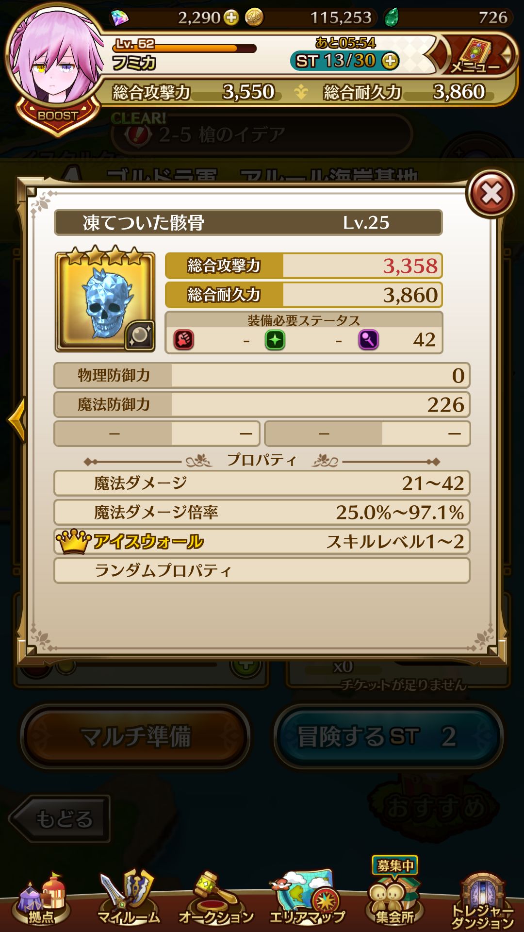 然后做好前面的准备之后,我们继续推图,然后我们会遇到我们的第一个难点,2-9的斧IDEA,说真的这里当时我打的骂天骂地也没打过去,斧IDEA的转圈圈实在是太恼人了,这就是我们第一次需要龟缩的时候了。我们可以去2-1无法者之馆,蹭多人队伍刷刷等级,或者是去2-5的阿鲁鲁海岸基地的2星难度刷等级以及装备,这里推荐后者,因为我们要在这里刷一个我用到现在50多级都还在用的装备