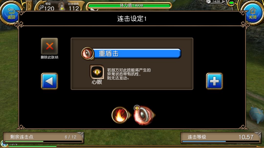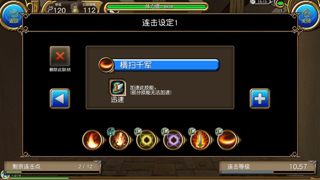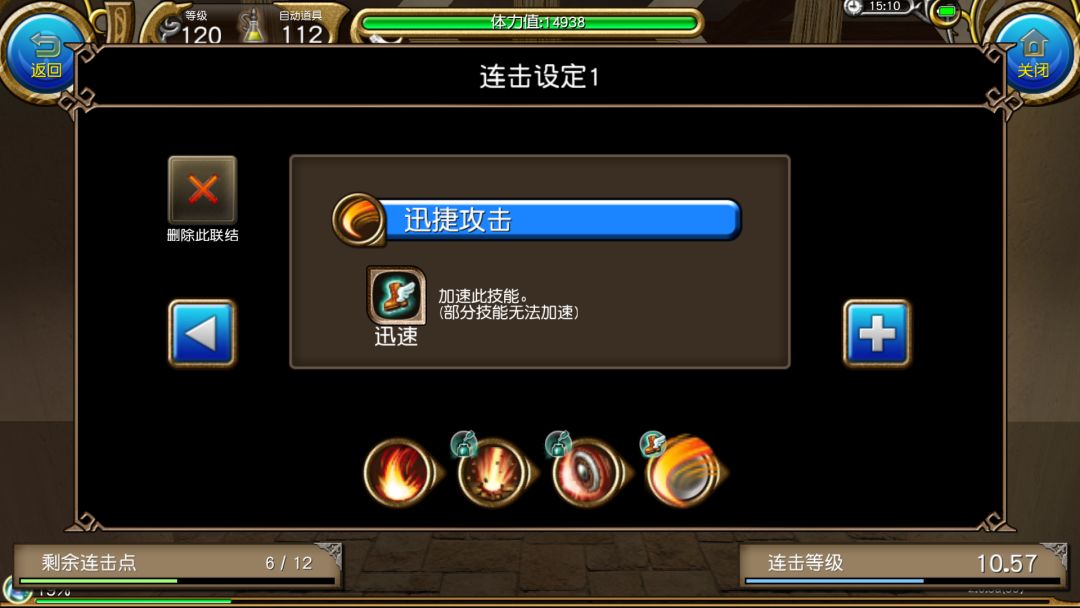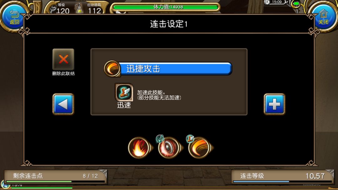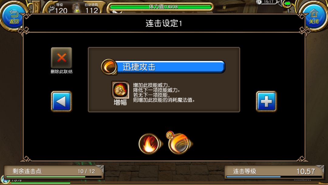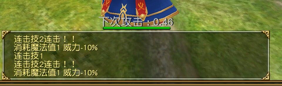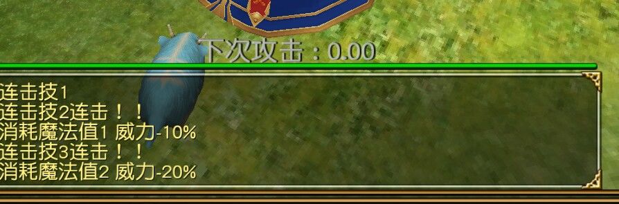 可以看到,虽然连击属性把我们本应该消耗的蓝抵消了,但也降低了本连击第二个框框内迅捷攻击10%的威力,也就是降低了十分之一的伤害。