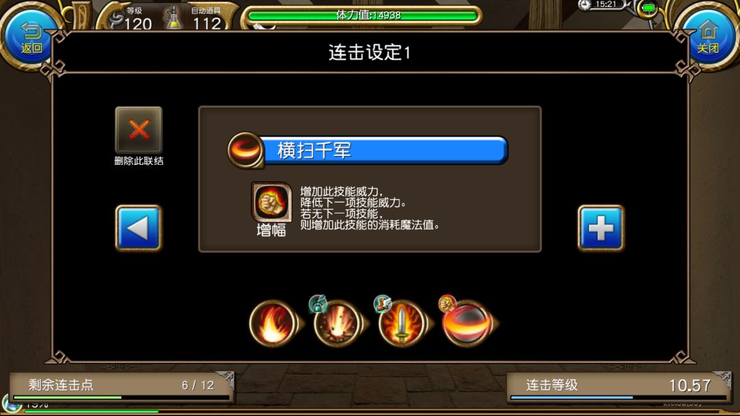 但是要注意,如果增幅技能后头没有其它连击,那么这个增幅技能就会消耗两倍的蓝。也就是威力1+迅捷1×2等于3蓝耗。