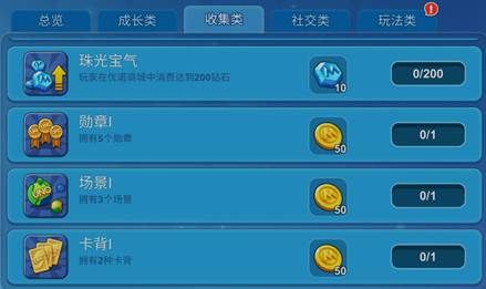 进入成就选项卡,可以看到你有很多“成就”需要去达成。分成了成长类收集类社交类玩法类