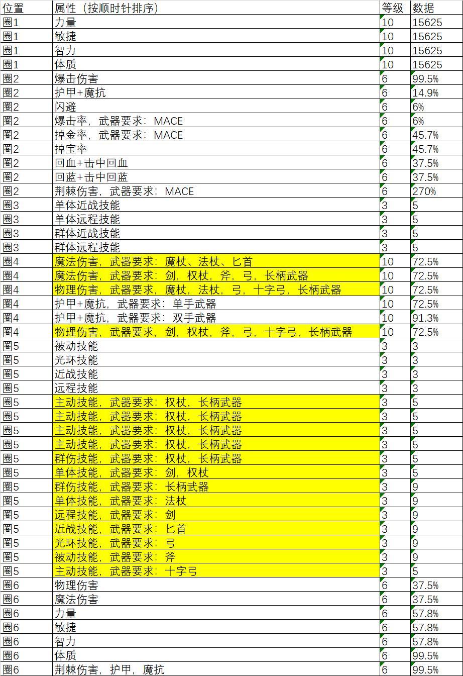天赋图,大家也应该都发现了,第四圈(剑类)和(法战、弓)加成应该是151.6%