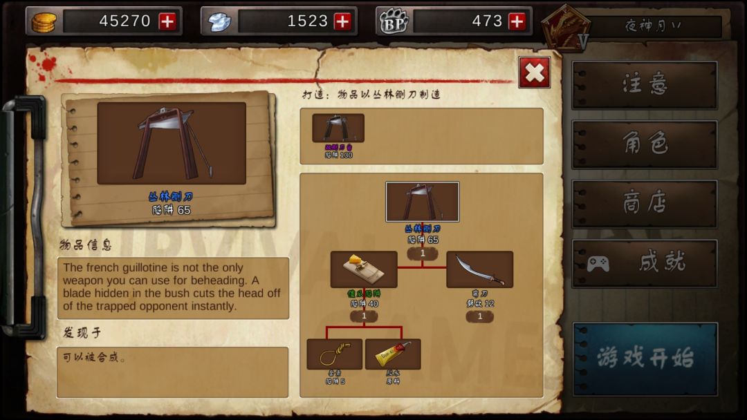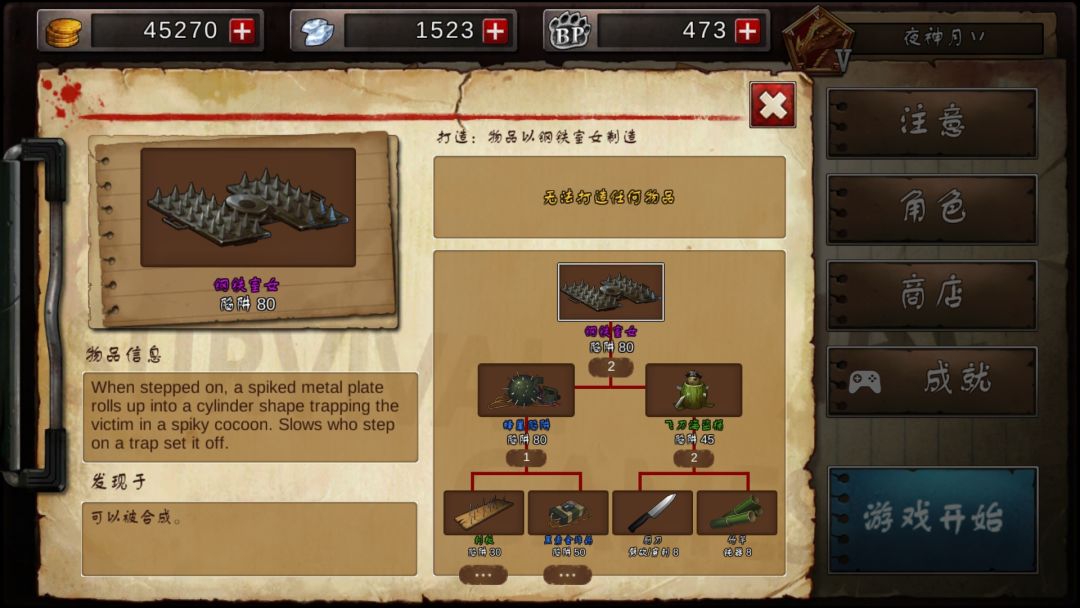 1.双侧刀台,这个是所有陷阱里伤害最高的一个。也是秒人吃鸡的关键。合成难度中等,山道可以拿到三样东西(弯刀、斧头、竹竿),再加锁链、圈套、胶水即可。