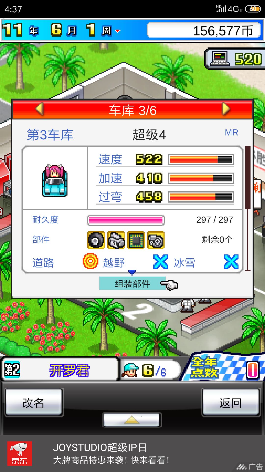 如图。上面车子改到90左右,改装大多数都不是爆气。零件改装少数爆气,V10改满,涡轮60,运动80,64位60,猩猩岛开罗岛拼爆气一次过,目前技术260左右,休闲玩家打法,赶时间的大佬勿喷,我想说的是通关不一定要用马赫车。超跑也很好使,车差不多能到这个数值加个涡轮就可以过开罗(但跑的时间快慢不敢保证,我一分钟出头,算慢的)