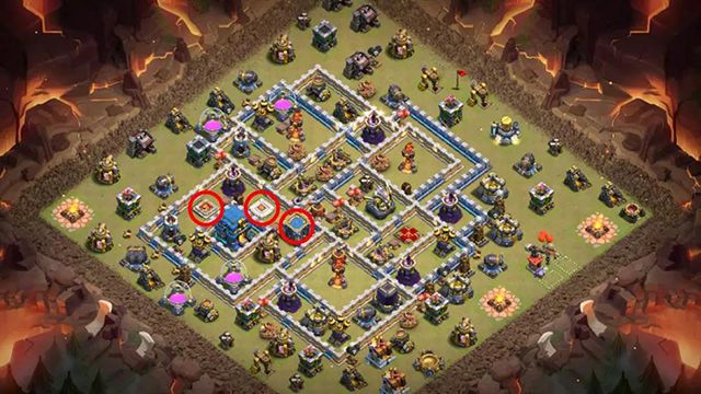 部落城堡与双王守护着五星大本,能够有效拖延敌人的进攻,密集狭长的格子阵能够有效阻挡敌军,让防御建筑火力全开。