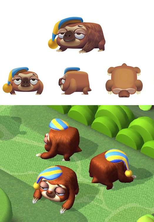 我们期待树懒给人像疯狂动物城里闪电的感觉,慢悠悠的,然后加上爱睡觉的特性。因此树懒就变成了一副睡不醒的样子。