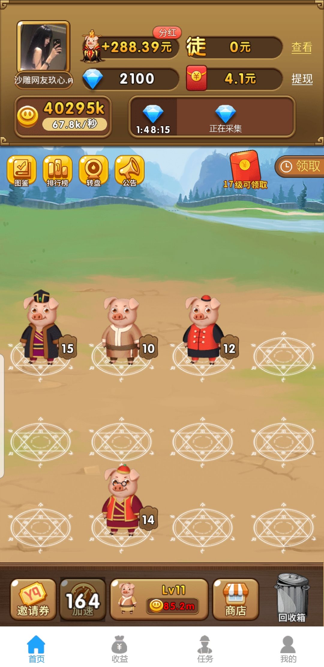 嗯,就是小游戏,可以拿红包就是需要时间积累,去升级!挣零花钱这样!