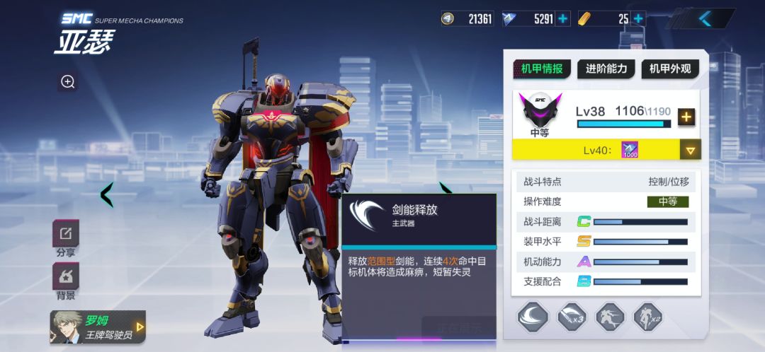 背景介绍:亚瑟机甲曾是“奇点战争”时期的王牌战士,时隔多年在机甲大赛复出,它凭借其重装骑士的古典造型和英勇无畏的作战方式,迅速成为赛场中最具人气的明星。