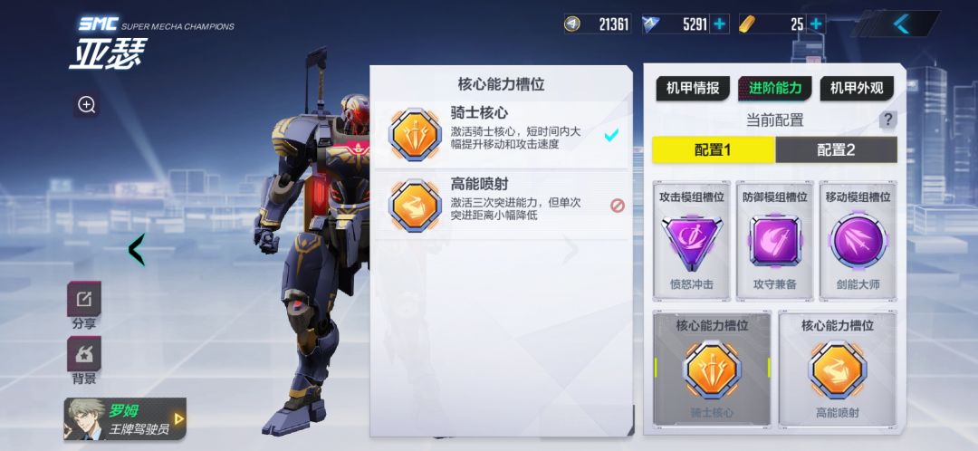 以上就是亚瑟的全部技能,接下来介绍机甲模组