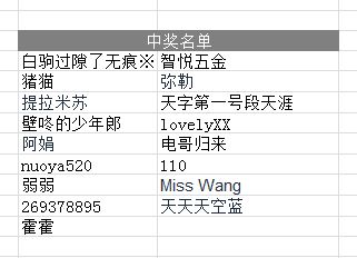 接下来小菲公布一下中奖名单: