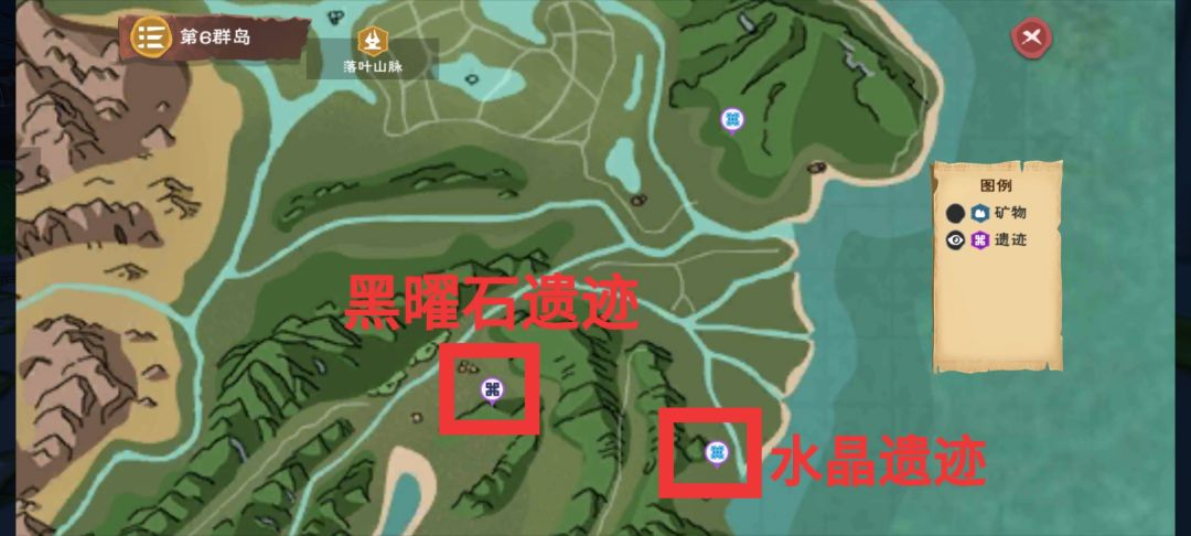 注:角色38级后地图才会显示水晶遗迹图标,48级才会显示黑耀石遗迹图标
