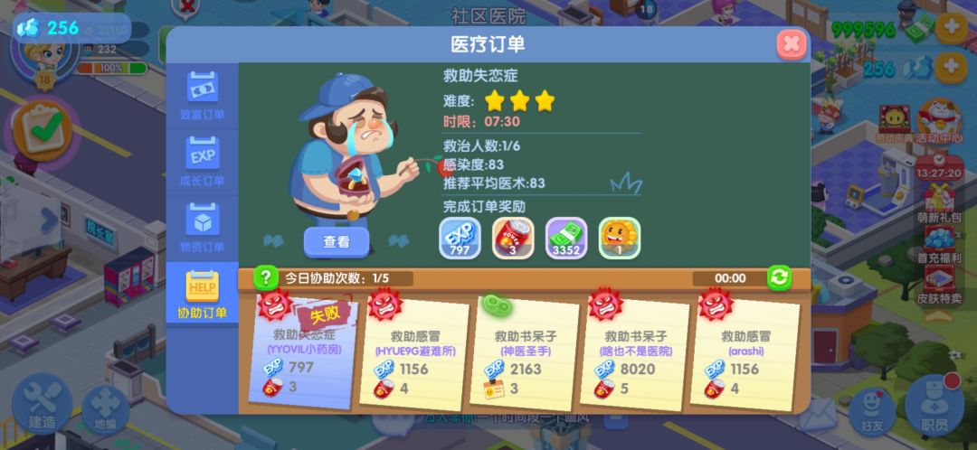 做订单的时候只能在自己的游戏页面吗?我去其他人医院逛一下点个赞,回来就发现订单时间在降但是治愈人数没有增加,我的医术和时间完成这个订单是没有问题的,这是bug还是故意这样设定啊,如果是故意这样设定,有点不太合理,要不就时间降病人治愈增加,这样单降时间的话不太合适