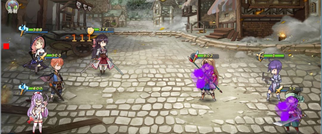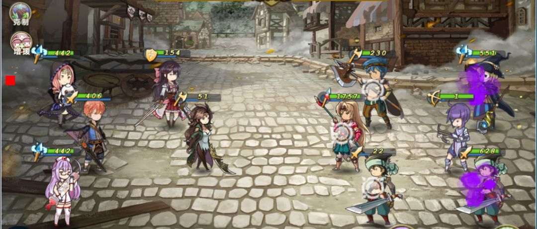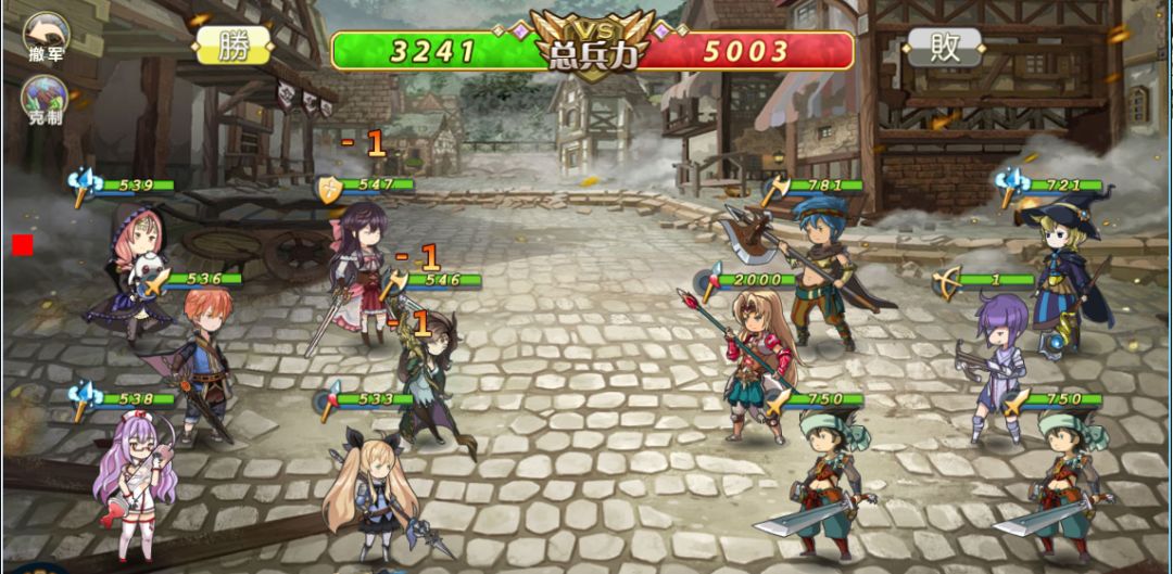 3. 血量1的弓箭手会随机对一列战姬造成1点伤害,这个是用来快速提升战姬能量的,如果运气不好,没有打中于吉或者关羽来攒满释放技能的能量,可以选择撤军来重新战斗。