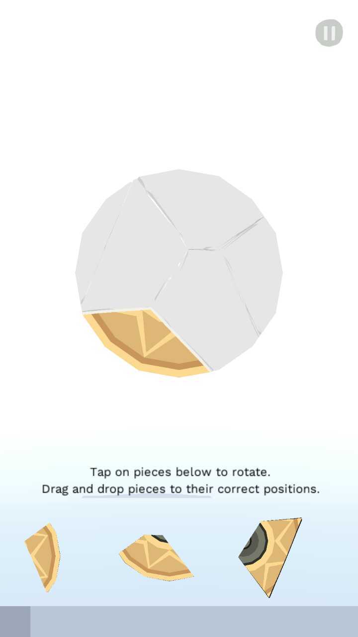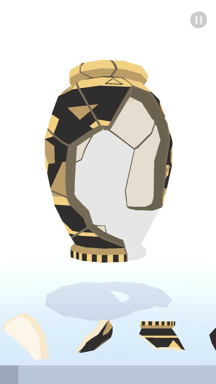 所以说,游戏的任务就是把破损的工艺品修复起来。游戏包含普通和限时2个模式,共20个关卡,从十关开始难度开始逐渐上升,最后两关真的有点难,很考验你的空间想象能力,不要被开始的简单蒙蔽了双眼,答应我,玩完再评论好么!限时也是根据关卡的难易程度来定的,总之,没那么简单,就能通关(差点唱出来……),什么,你觉得简单,那一定是你太聪明啦~