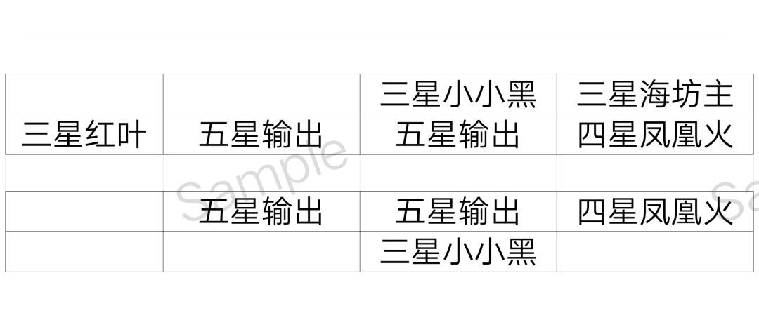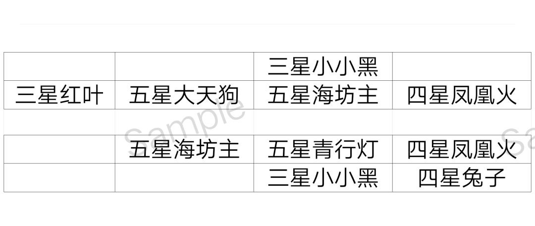 四星输出:鸩(非常棒!超级棒!最好了!),小白(也很棒!我爱这个男人!),妖狐,管狐,小鹿男,真天,白狼,面气灵等。