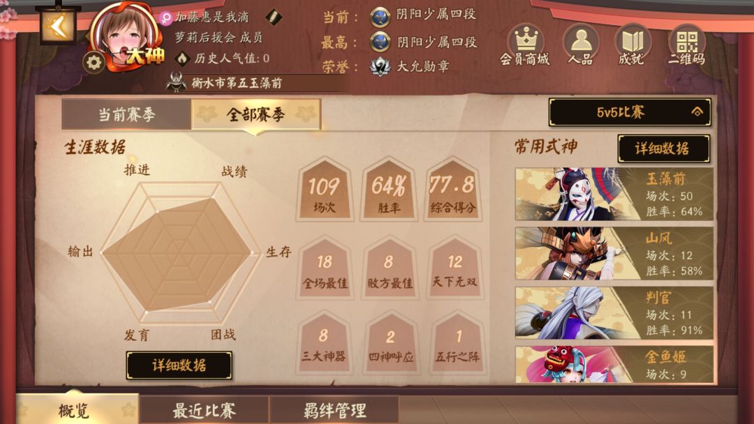 自己玩有点无聊,下面附上胜率和id,大神就不要来喷了,我并不秀,主玩中单上路