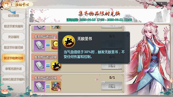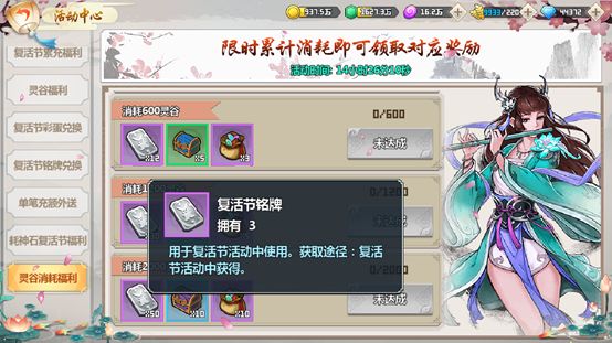 另外,活动期间每日消耗指定数量的神石或灵谷,也可以领取对应的复活节奖励,在攻略副本提升实力的同时还可以得到奖励的良机切勿错过!