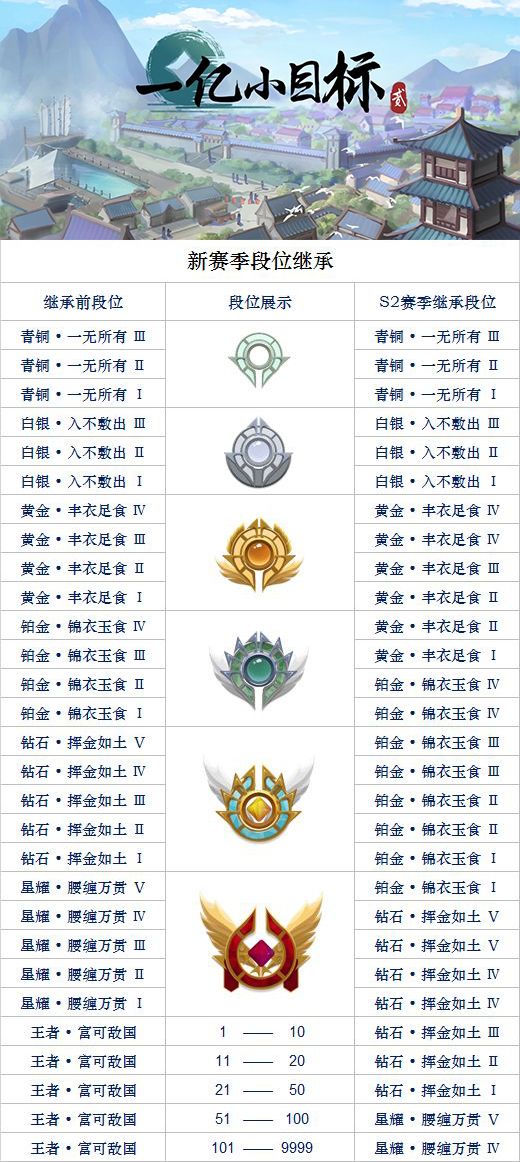 参与过S1赛季的玩家,可对当前段位进行继承。