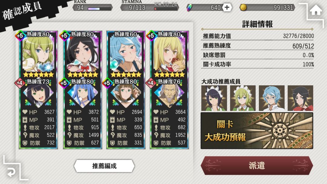 接着就是关于任务的两个成功率的决定因素了:从上面图也可以看出来“成功率”是由派出成员的熟练度以及能力值决定,而“大成功率”根则是由大成功率推荐成员的熟练度和能力值来决定,据测试是各达到要求的一半即可大太阳——当然简单来说就是,队员的熟练度(一般称之为"等级")越高越好,尤其是任务推荐的队员。