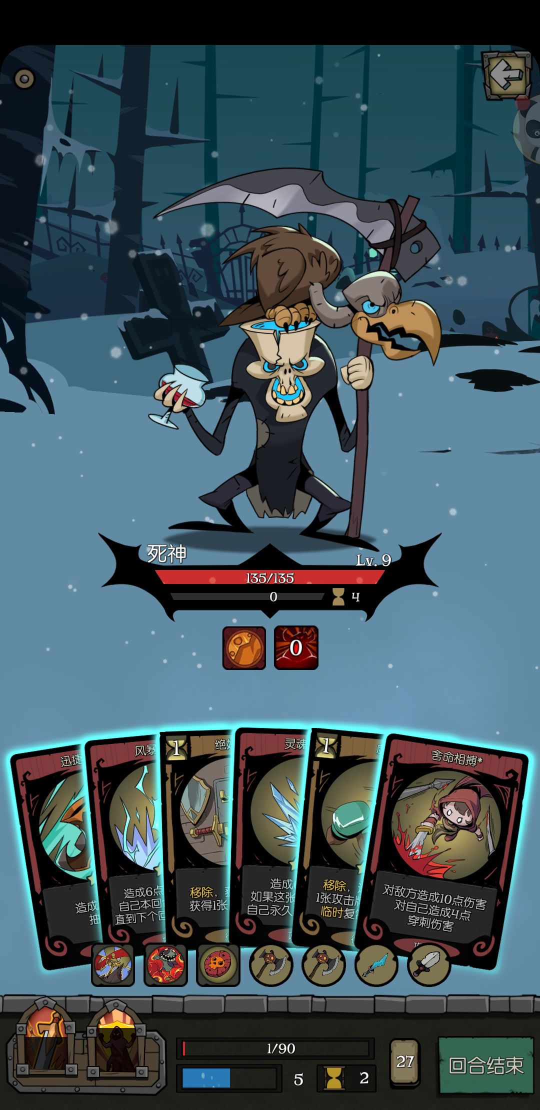 绝境逢生啊,最后没别的选项只剩两怪物,一个死神一个精灵女王。我就一滴血 再来一经验才能升级。没有回血卡牌,我自己都觉得我可以重开了,结果不死心打了五六回,没想到竟然过了。最后连打两个boss,一个精灵女王一个神父。我就凭一滴血逆天翻盘。