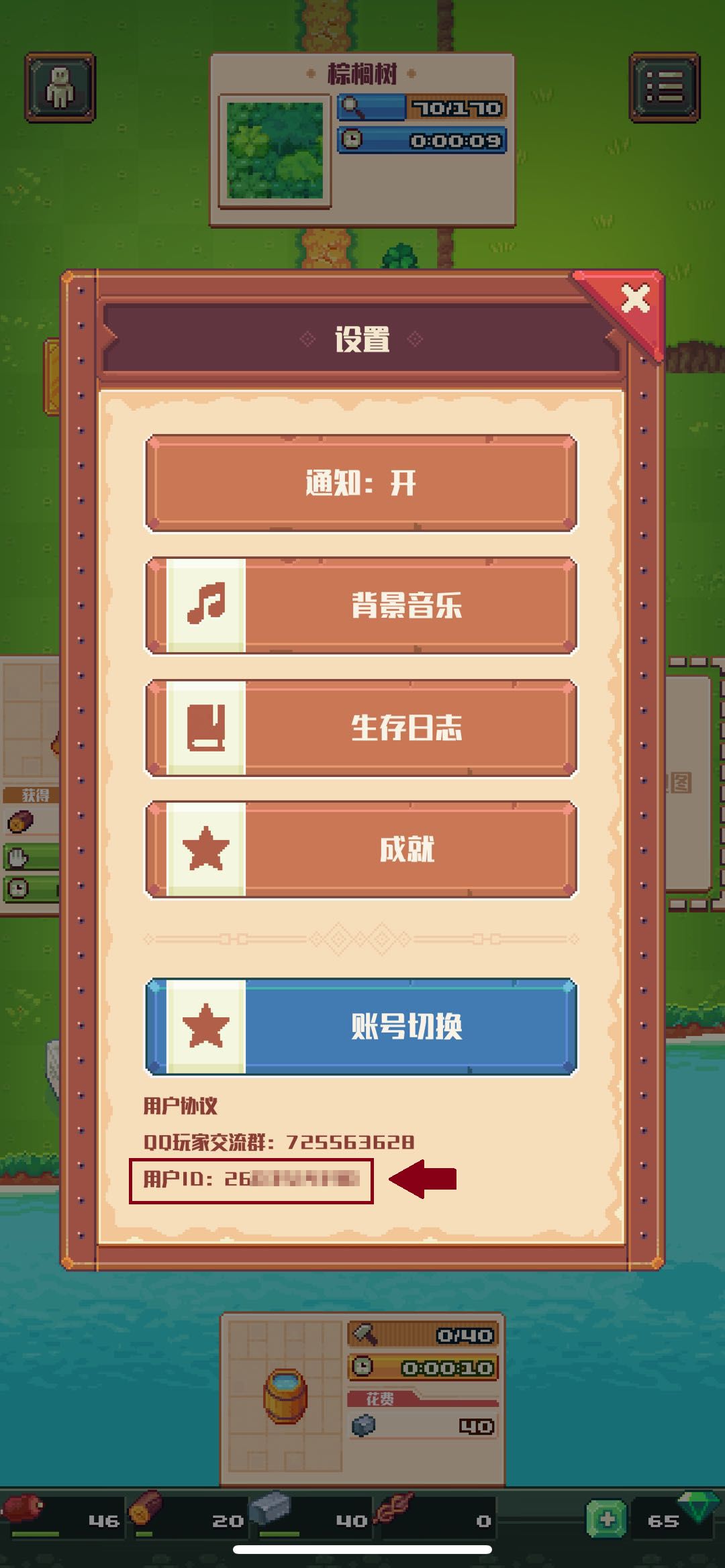 游戏界面右上角:设置 ——> 按钮下方 最后一行数字