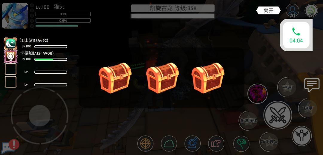 这个开局猫头直接放四个技能,顺序是:破甲-神速-全体强化-净化回复。
