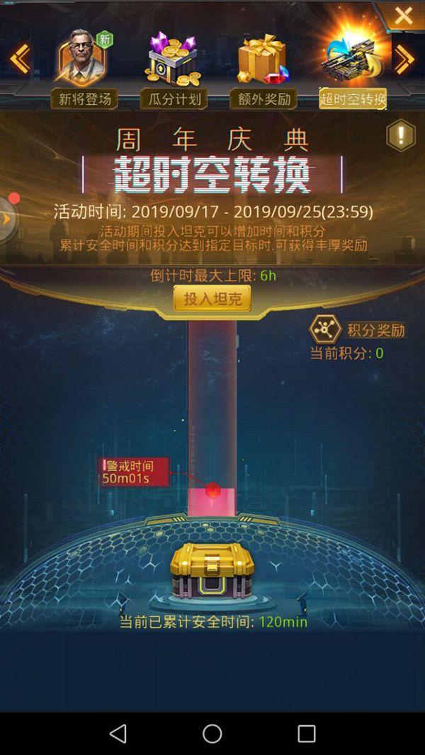 活动中可以投入各种坦克,获得超时空积分。超时空积分达到一定条件后,就能活动相应奖励。投入坦克后会增加超时空时间,当时间流逝一定后,即可以获得超时空大奖。