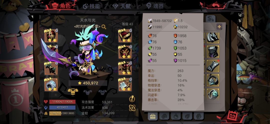 3.为了最求最大容错率,要求无损到BOSS面前,这时候需要根据自身以及守门员BOSS做针对性的装备,本人可以无损过1-10守门,一楼 附图是过1-10关卡的装备,为了过BOSS,我准备了一件+2000物防+10000火防+1千多小攻的装备。