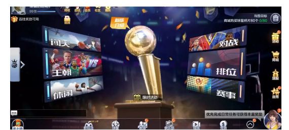 目前,《最强NBA》王朝模式主要分为自由匹配和天梯排位两种模式玩法。其中,“自由匹配”主要功能为自由开战,可以随时定向邀请在线好友1V1单挑,也可以点击开始匹配与其他队长进行PK。“天梯赛”则类比于3V3中的排位赛,队长们可在这里冲击段位,尽情展示自己的王朝实力!