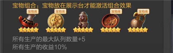 当玩家朋友升级建筑收藏室后,对应会增加游戏内的宝物格和分解宝物后获得的宝物升级材料。目前版本中,收藏室等级上限为30级。