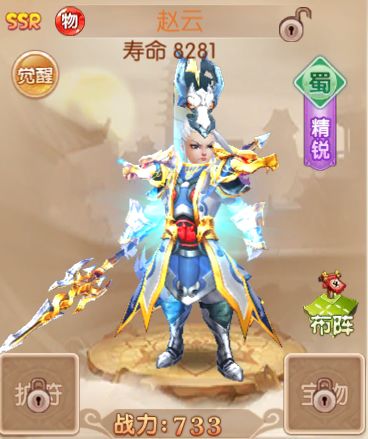 介绍:赵云字子龙,蜀国五虎上将之一,身长八尺,姿颜雄伟,能攻能守,常胜不败,于长坂坡一战中名震天下
