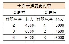 - 以2、3、4基本构成的兵力卡牌的召唤承办,将下调一个阶段。
