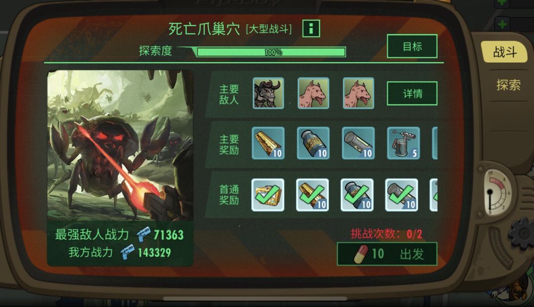 我们知道辐射避难所ol中升级主力战斗角色装备以及工具人的工具都需要大量的材料,那么除了巧手先生的探索以外,刷图肯定是材料获取的重要来源,扫荡只能获取最基础的材料奖励,瓶盖商人,答题,宝箱以及副本中小怪的掉落都无法通过扫荡获取,那么我们就需要适当的手动刷图保证材料不缺少,那么具体刷什么图呢?下面给出各个级别的推荐,从25级开始,另外大型本强烈推荐手刷,体力消耗少并且给的材料多。