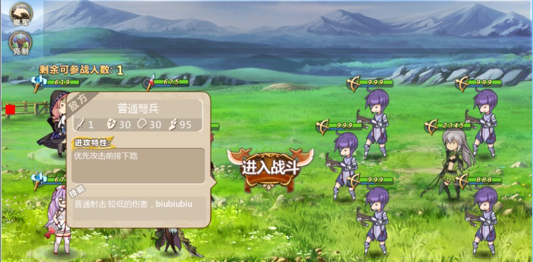 2. 后排下路的的弓箭手伤害很低,速度很快,可以给我方战姬提供能量回复,因此可以把攻击力高的战姬放到前排下路(建议放关羽)