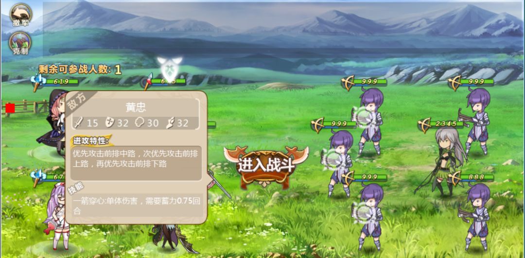 3. 第三轮全力攻击黄忠,清理残兵即可轻松过关。