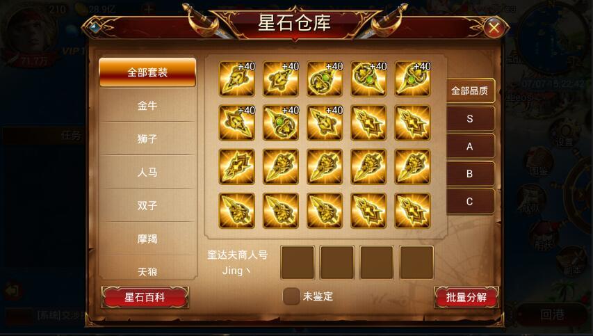 最后,在星石仓库的界面就可以快速查找拥有的星石啦,然后对其进行装备、强化、分解等操作。
