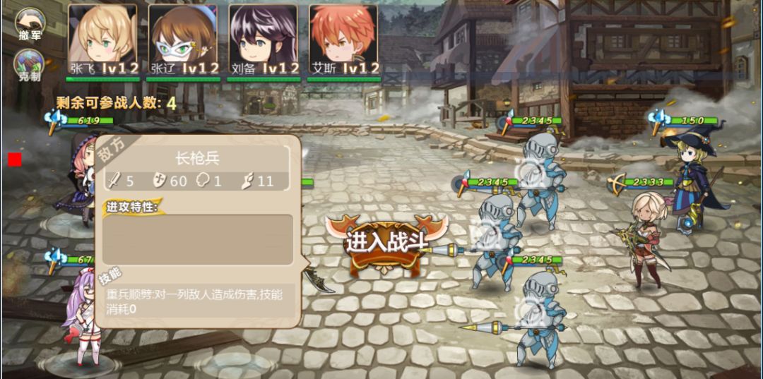 4. 长枪兵反击伤害不俗,因此炮灰角色避免主动出击,采取防御即可。(炮灰就应该做好炮灰的职责)