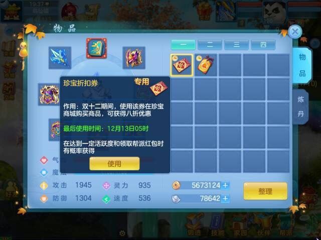 购买珍宝商城的道具时,使用折扣券可以获得8折优惠