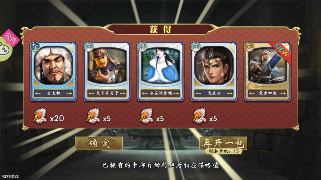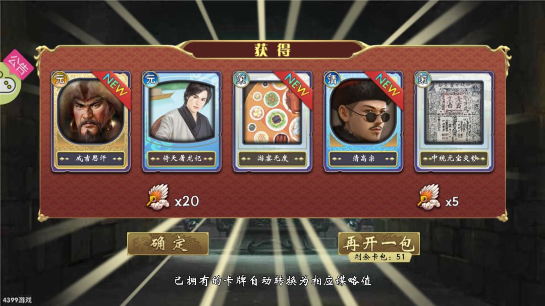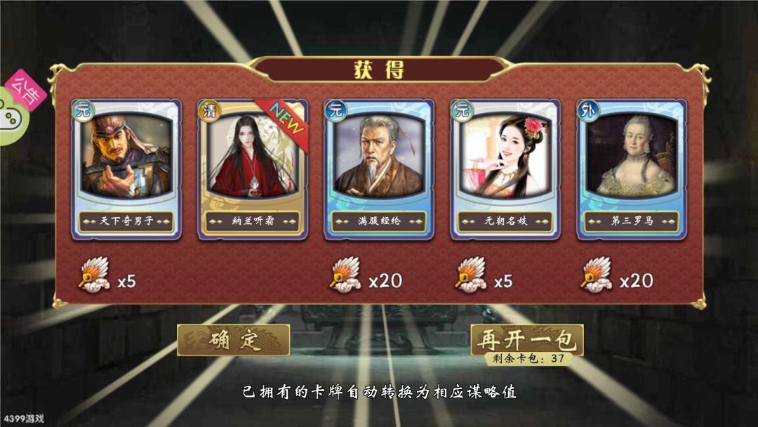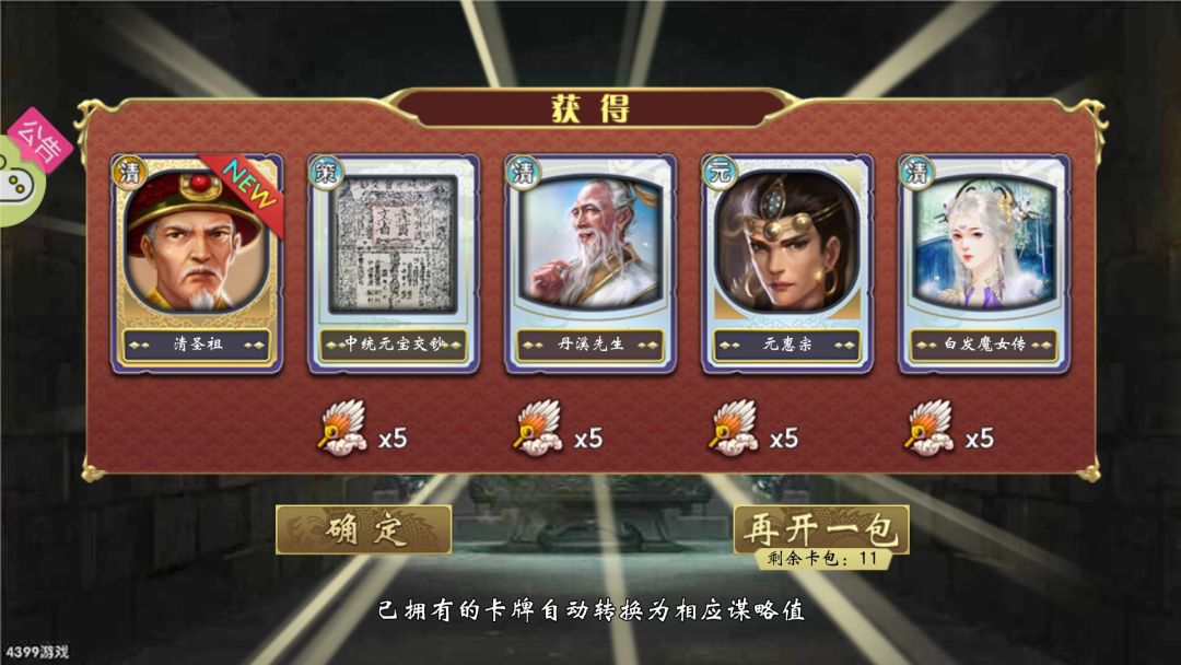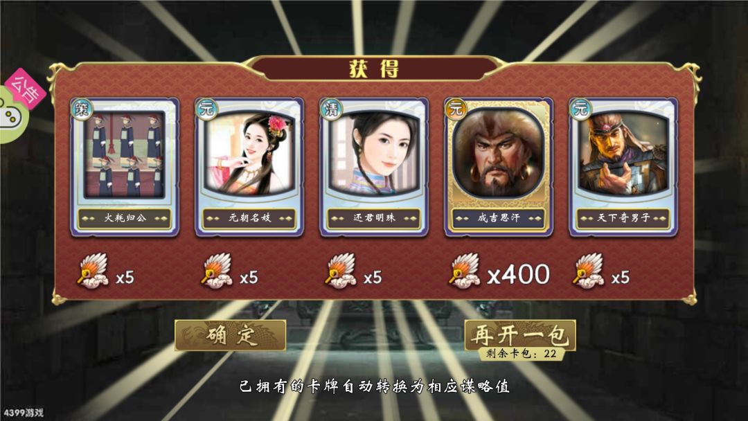 在用光了我攒的27全卡包和55个元清包,然后花光了我谋略之后,差一橙四紫,橙色差个云胡不喜,紫色是三臣卡一妃卡,用处都不大