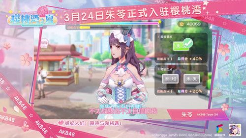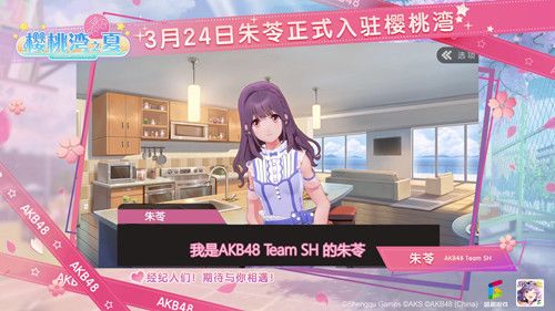 AKB48正版授权偶像经营互动手游《樱桃湾之夏》今日宣布:AKB48 Team SH成员朱苓将于3月24日正式在游戏中实装登场。届时,各位经纪人可以在游戏中招募朱苓,同时还能参与进版任务等多项活动!
