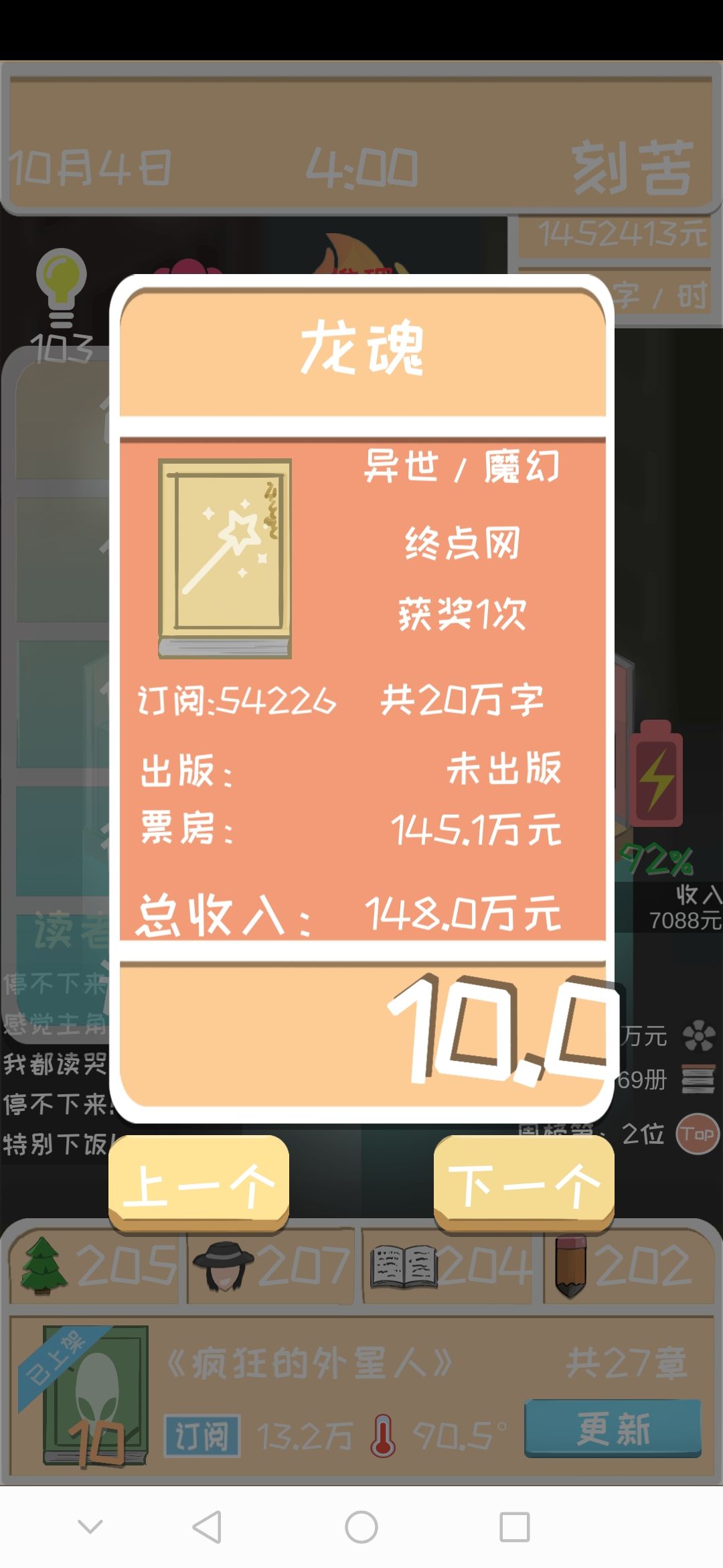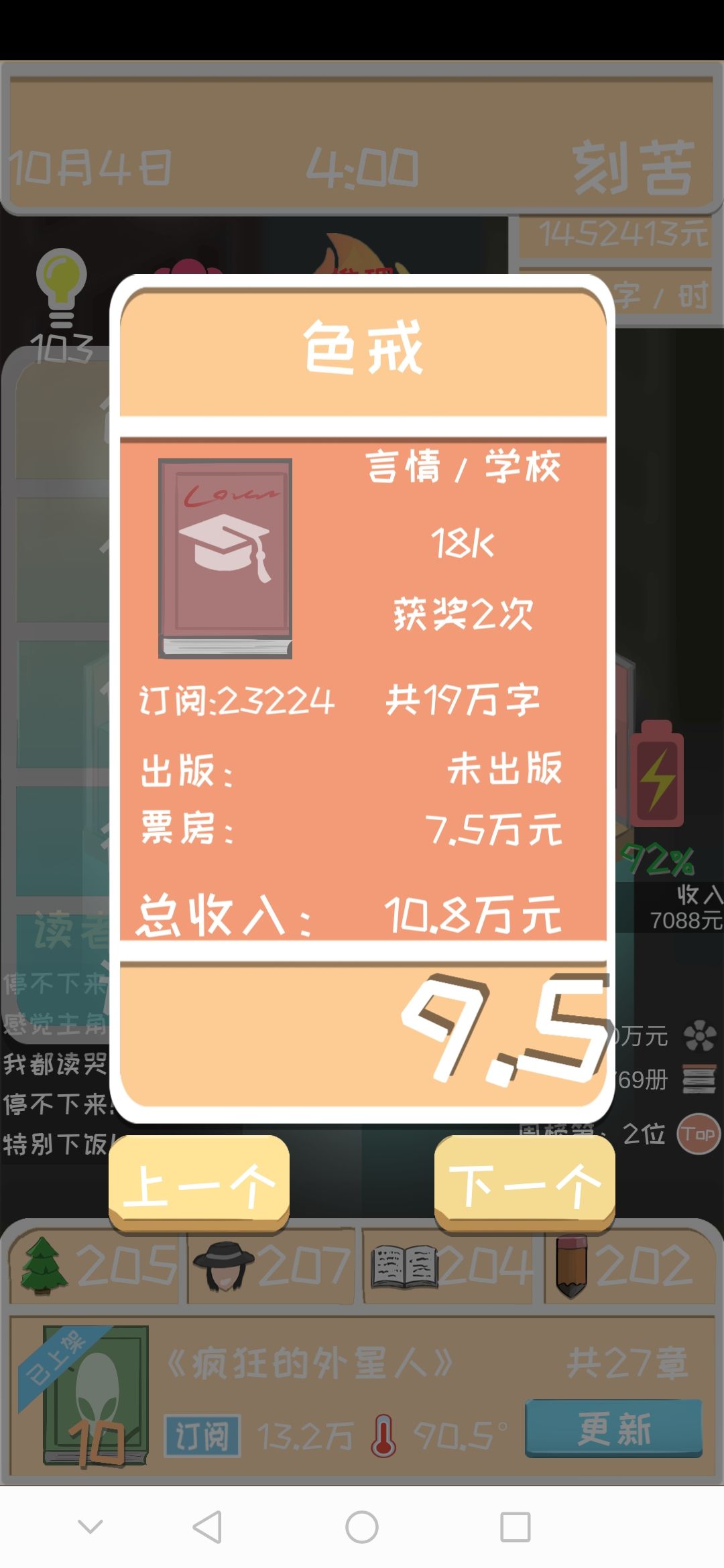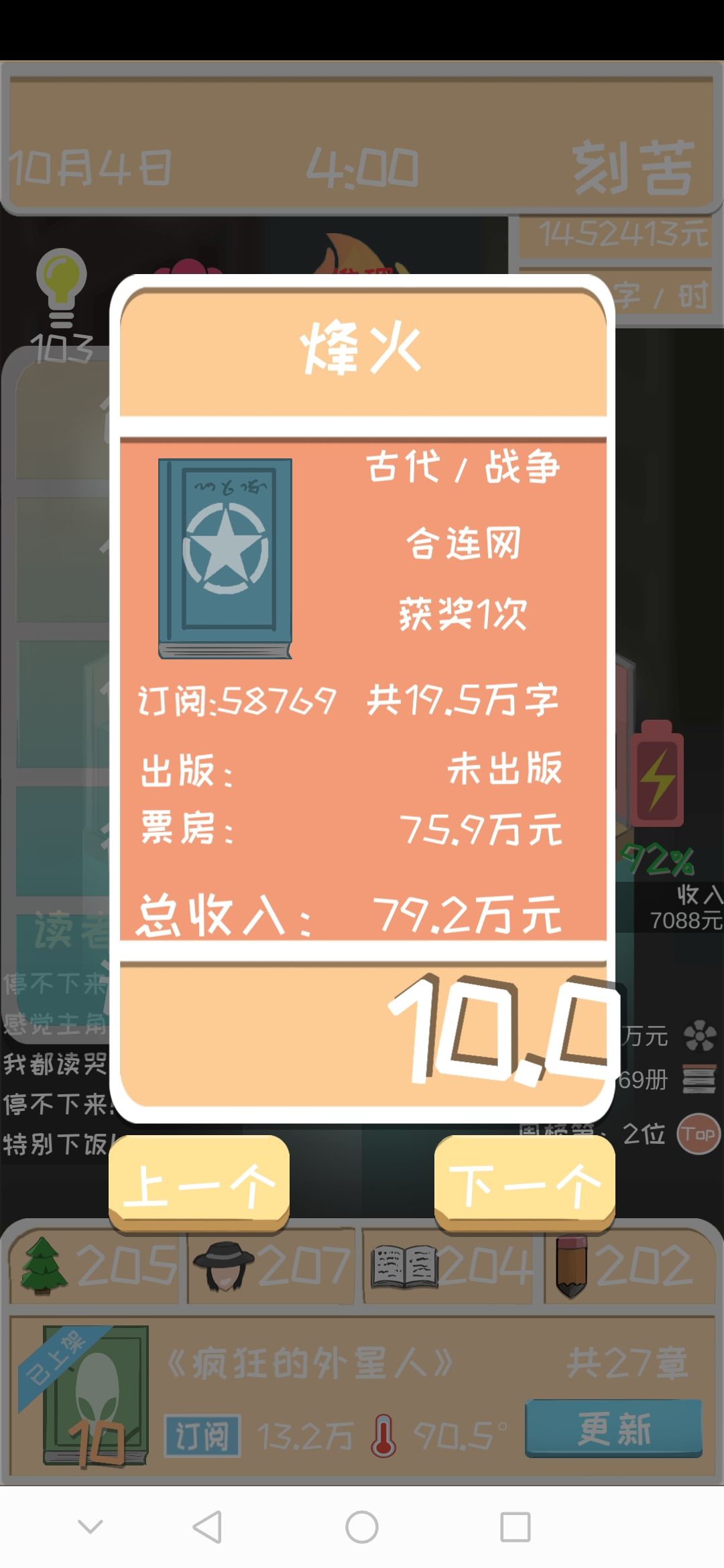 5.第一部小说尽量选择一个好的题材这样更容易简单的开局,每次给你刷新的后面儿的题材也是不一样的,但是我发现大部分都有战争这个题材,古代+战争就是个完美的题材。当然这个看个人意愿。要是都按照一种方法玩儿的话,相信这个游戏就没意思了对吧。