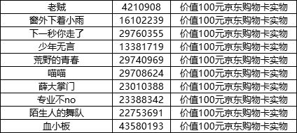价值100元京东购物卡实物(10名)