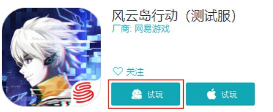Step1:在TapTap的安卓客户端或者网页的风云岛行动(测试服)游戏详情页点击“试玩”按钮。