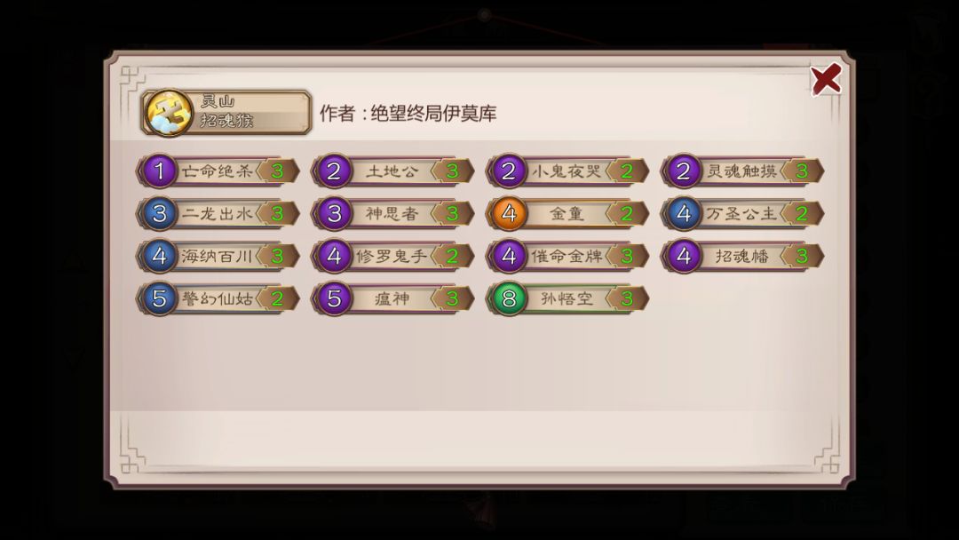 ①需要在前期把孙悟空和任意敌方生灵放入废牌堆并抽到招魂幡,这较为困难
