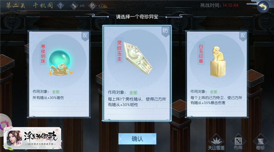 为了使玩法更加有趣,《浮生为卿歌》中的“归墟山庄”玩法在每个关卡中还设有百晓书馆。玩家可在百晓书馆内挑选一名随从加入自己的阵容,选择适当的随从也能令玩家更易获得胜利。此外,归墟山庄产出的奖励更是多种多样,其中包括橙色珍宝、橙色珍宝碎片、染色花纹、珍宝升级材料等!“归墟山庄”从多方位的细节把控,给予了玩家最为全面的优质游戏体验!