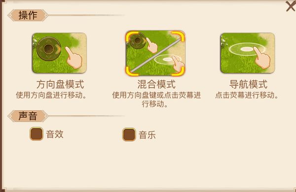 当你选择方向盘模式时,游戏主界面左下方会出现圆形方向盘,点击方向盘进行人物移动;当你选择导航模式时,触摸点击屏幕就可以执行移动操作。