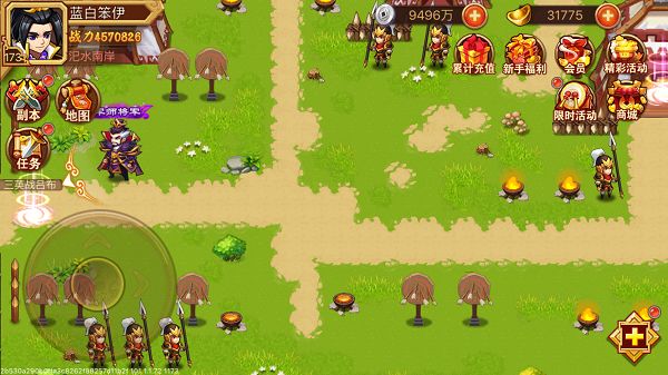 一键装备、一键强化、武将培养为功能性按钮,可进行相关操作。(具体的在游戏强化篇详细讲解)